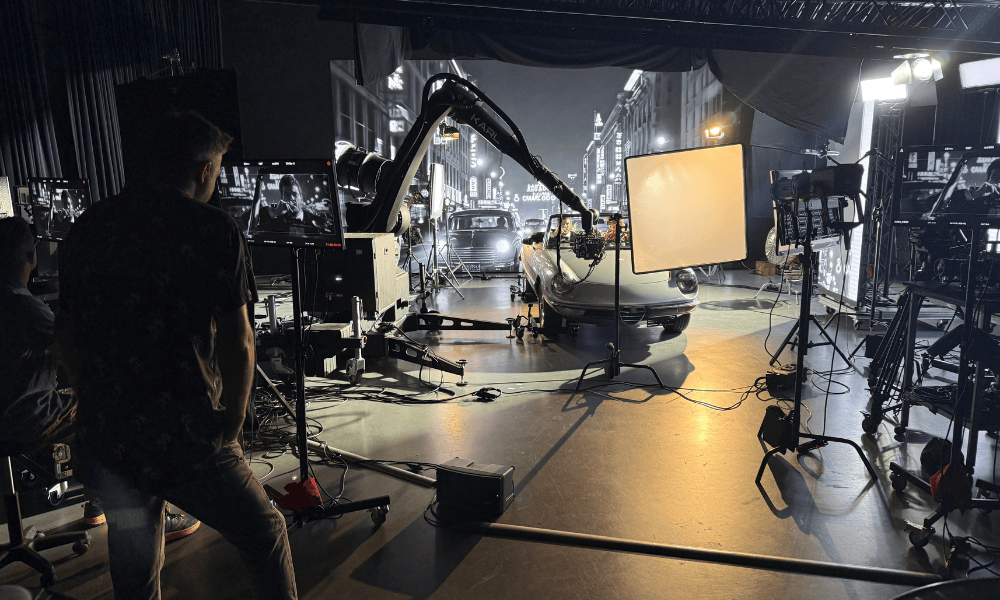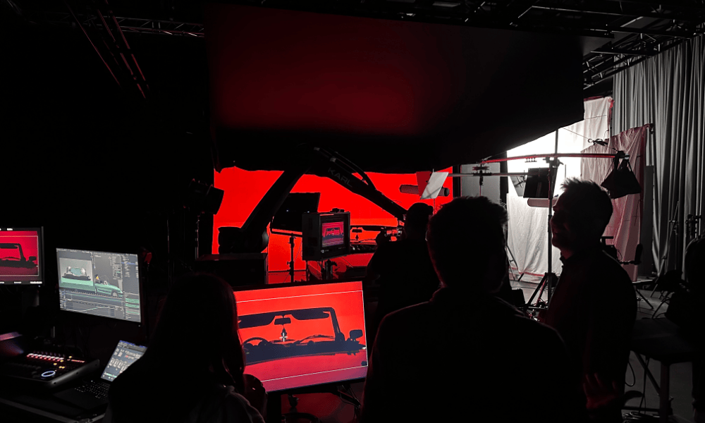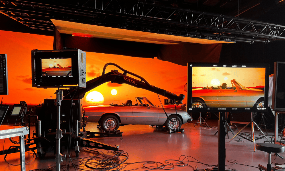 The film began life as a volume wall test at the Geneva LED Studio, where McMahan was invited to direct a demo. Armed with a large screen, a car and an team of environment-builders using Unreal Engine (a real-time 3D creation tool), a road trip felt like the natural story. “From there it became a fun creative challenge: how far could we take these characters on their journey without ever leaving the studio? That tension between physical escape and digital illusion ended up becoming the core of the film.”